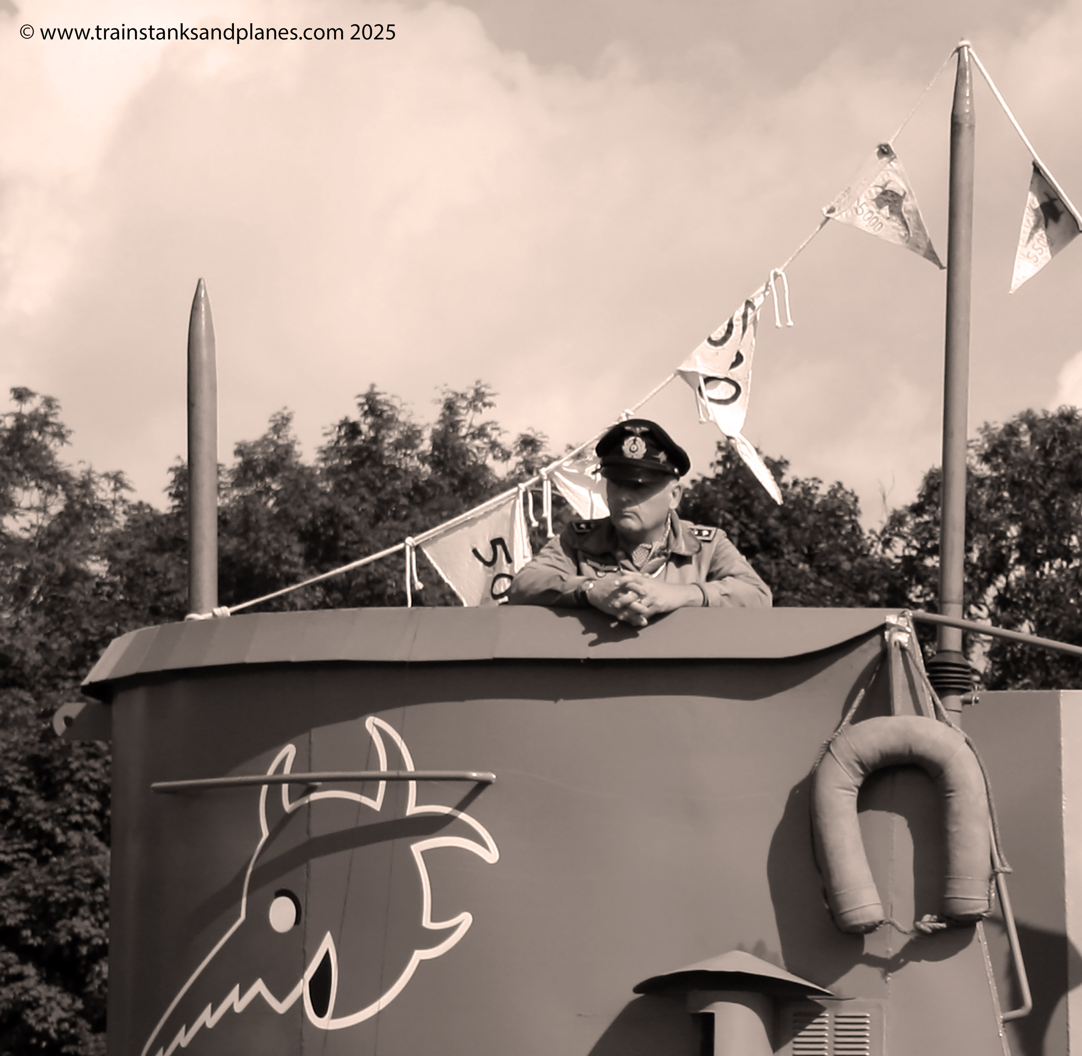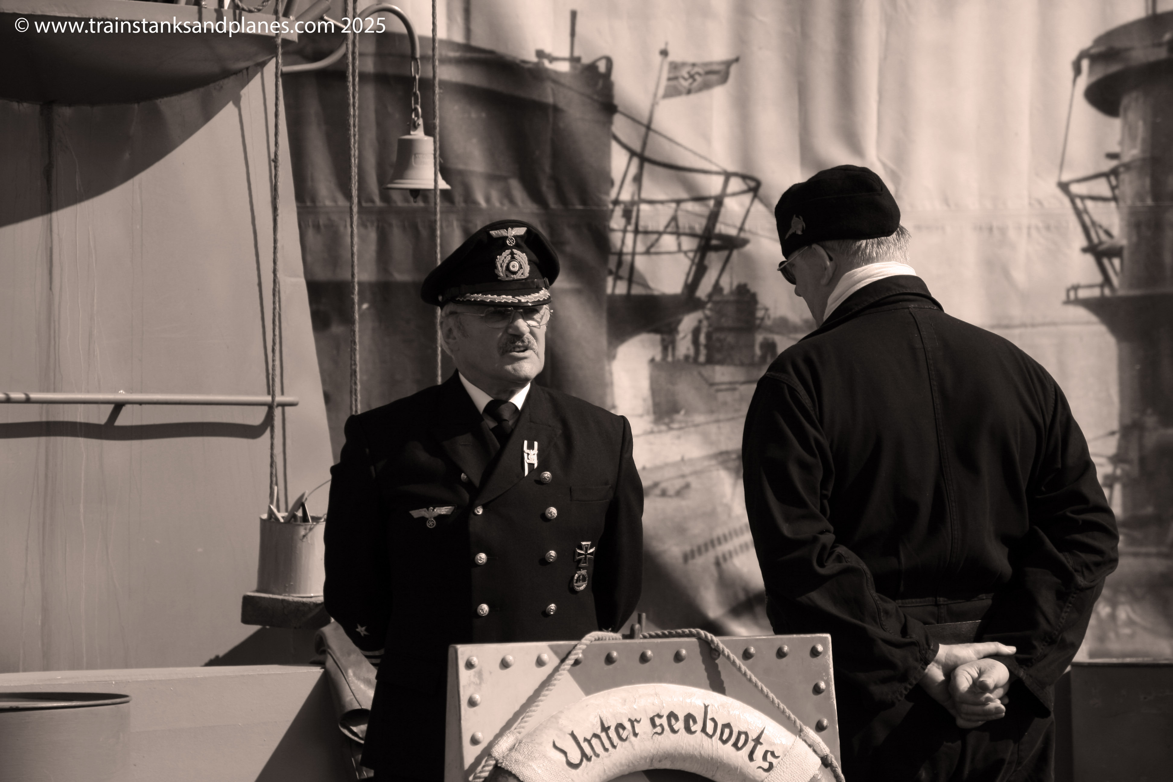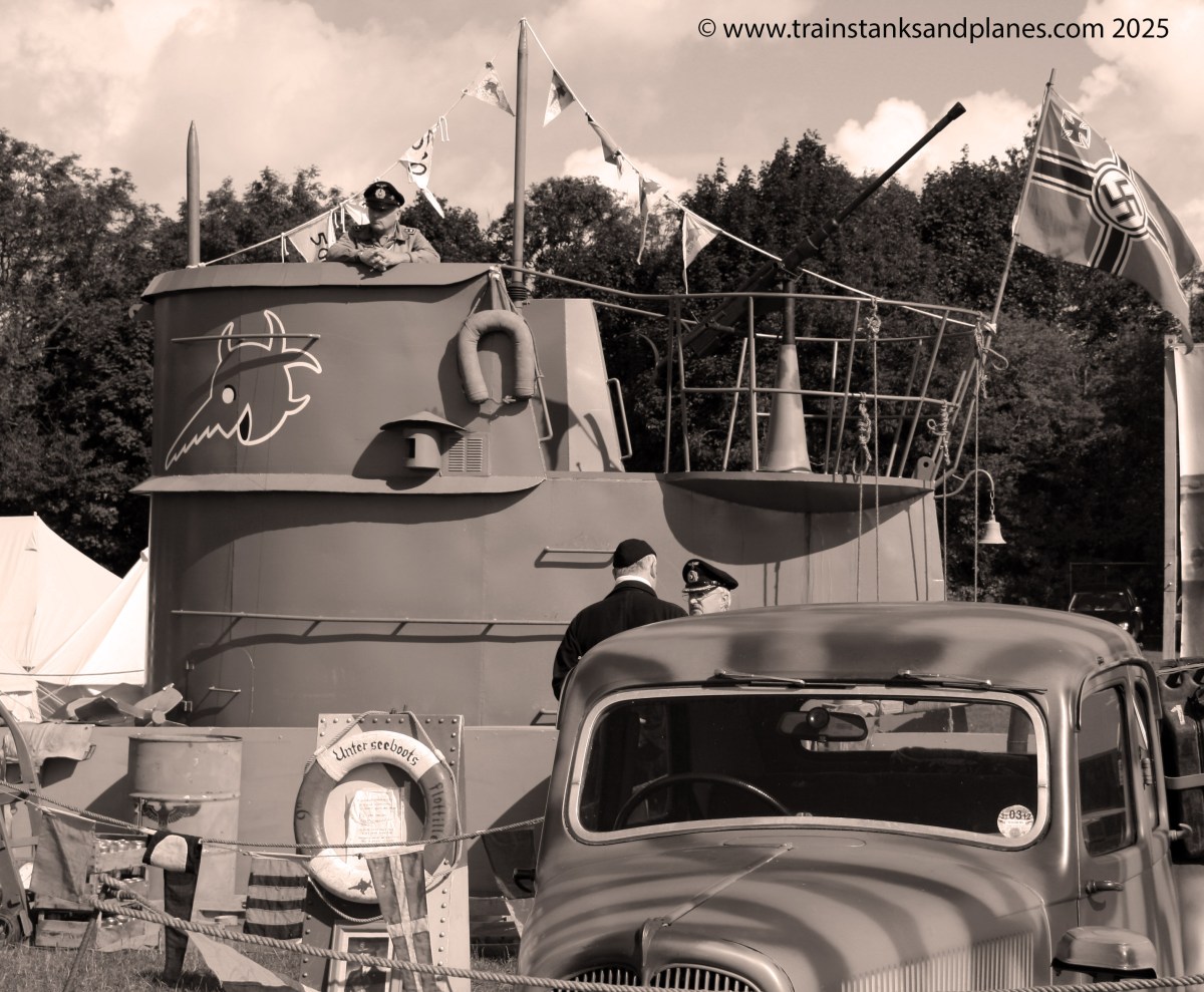 Something you don’t see too often is a German World War II U-boat on top of a hill, but this is what happened at Military Odyssey 2011. At the time of writing I can’t readily put my hands on the show programme, which is always excellent BTW, and I’m sure it will provide informative information on the U-boat and the group that own it. Suffice to say that it was a super piece and allowed for some unusual photographic opportunities.