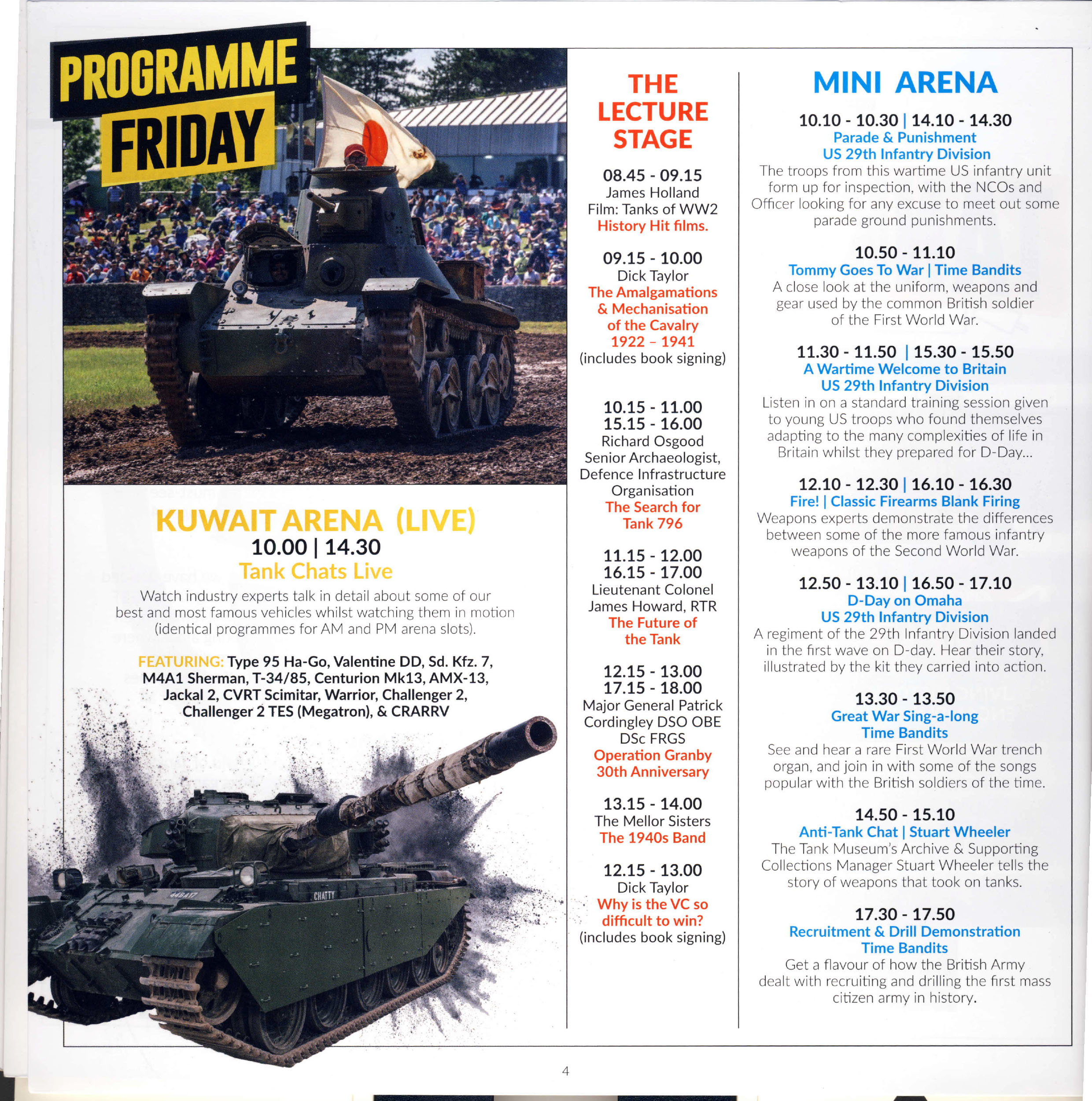 - An additional ‘Mini Arena’ was in action on all 4 days of the show featuring displays by reenactment groups and more ‘tank chats’.