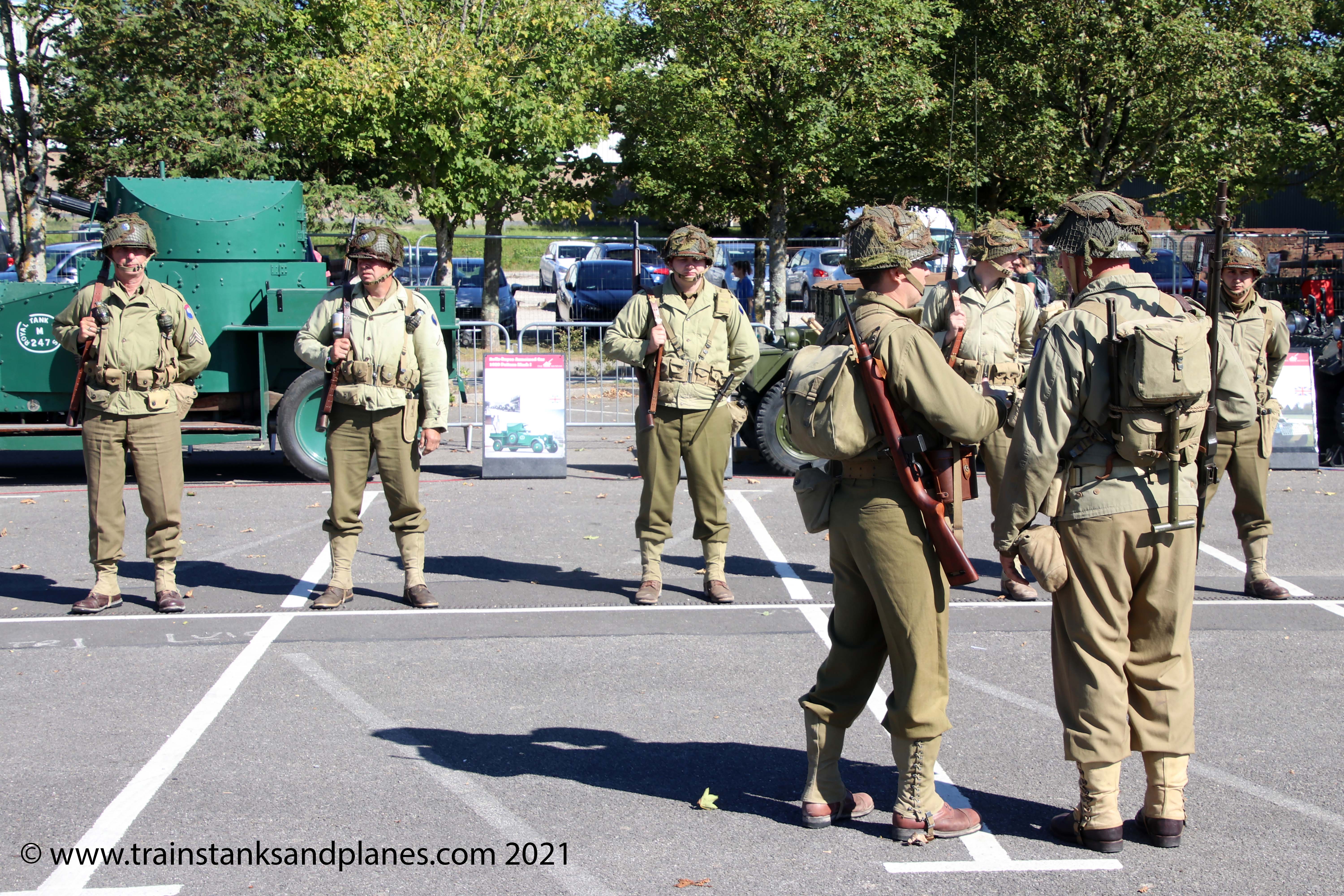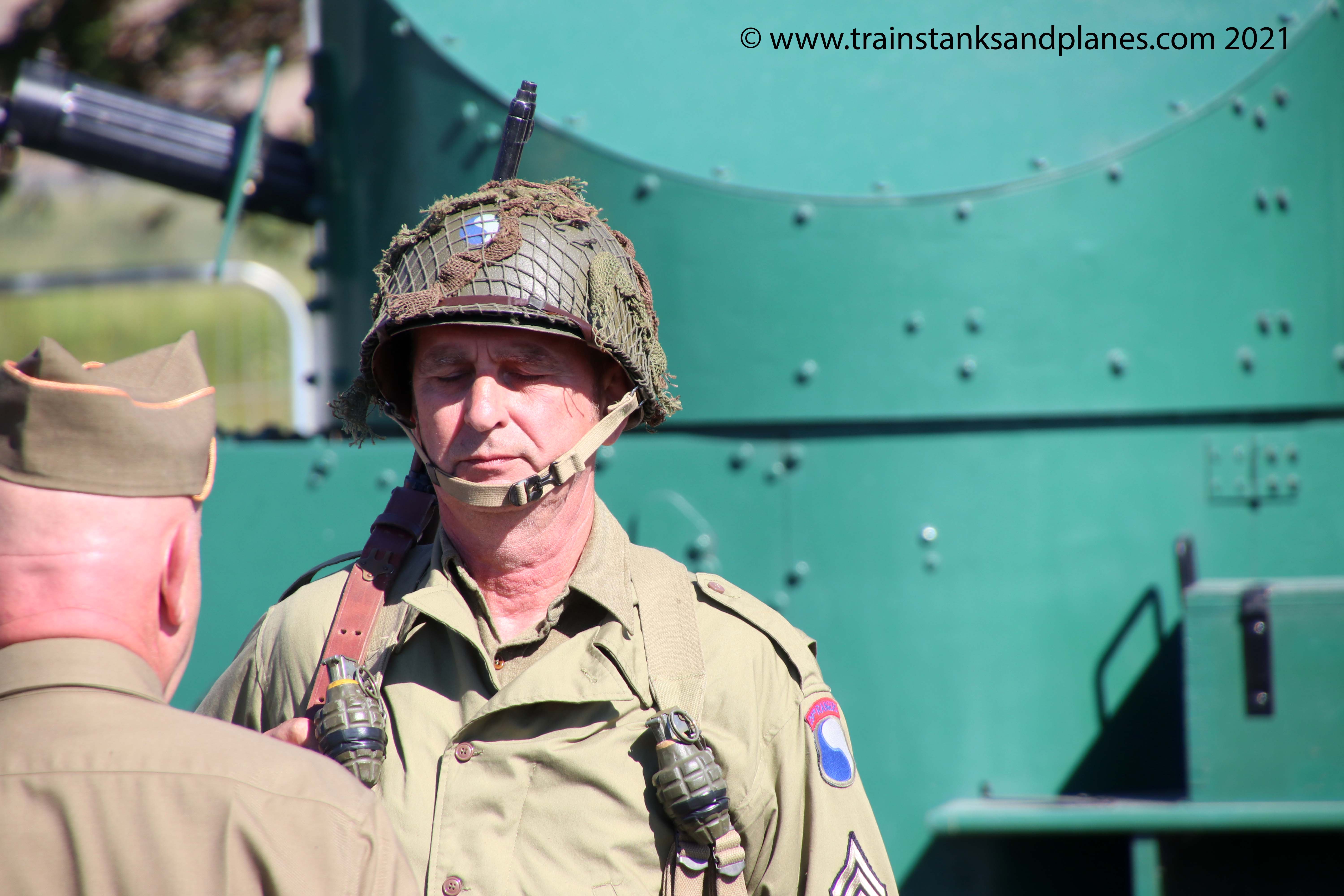 An interesting presentation was put on by the reenactors representing the American 29th Infantry Divison from the 1941-45 period. Rather than the more usual drill displays the presentation paraded the troops for inspection by a Master Sergeant who was a stickler for the rules. Many were the infringements as was the historical accuracy, for example we learned that the commander of the division, Major General Leonard Gerow, insisted that his men always kept the chin straps of their helmets fastened.