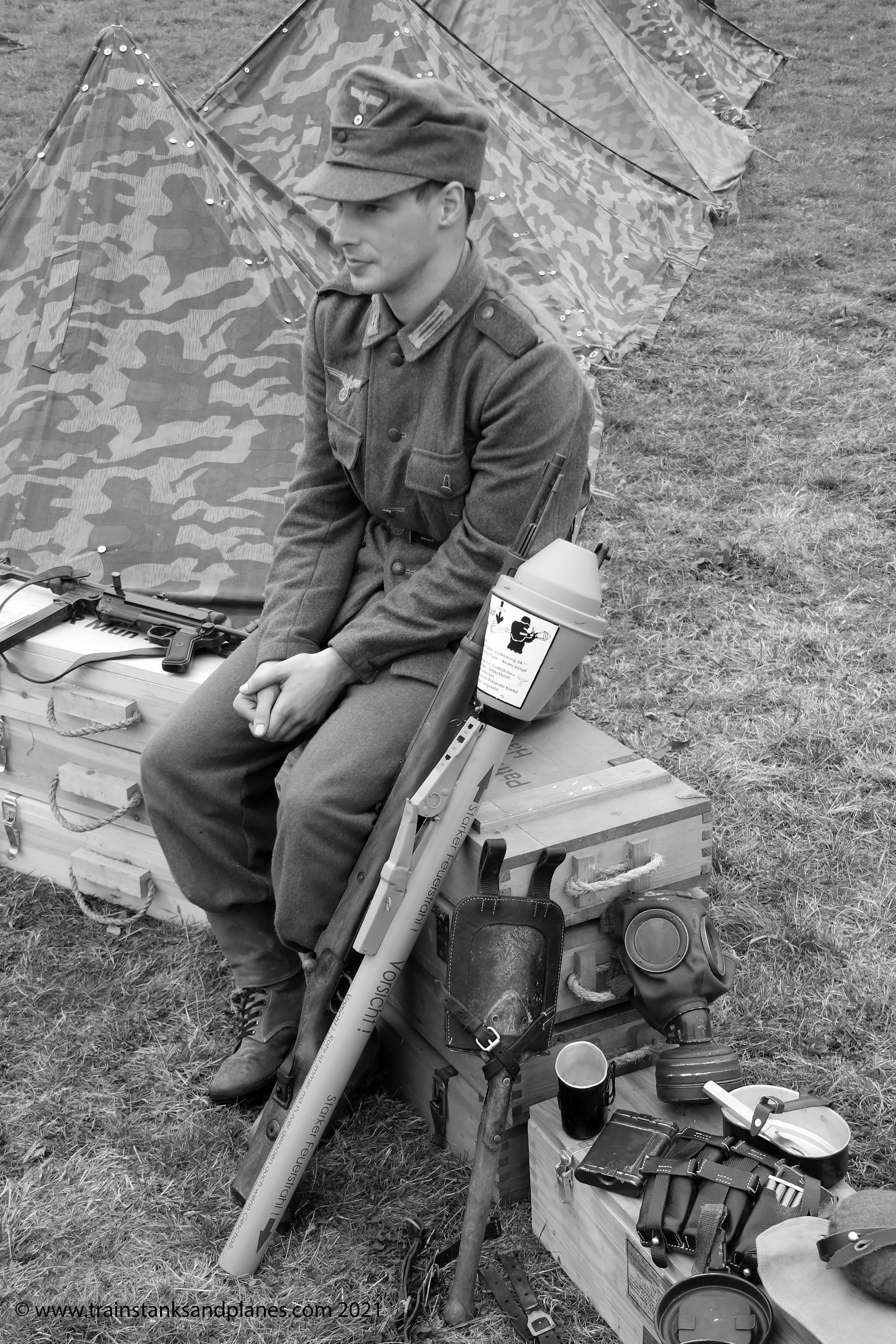 I shall end with a look at the reenactors representing the German World War II era 304th Panzergrenadiers. This group is authentically equipped, very knowledgeable and performed excellently in the World War II battles Arena battles.